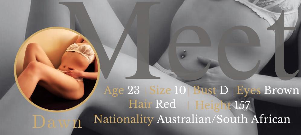 Meet Dawn, a down to earth, effortlessly sexy Australian beauty with a captivating South African edge. Young, stunning and full of natural charm, she knows exactly how to leave a lasting impression on every man she meets. With her irresistible energy and undeniable allure, Dawn is an experience you won’t want to miss.